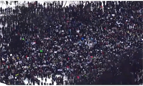 Protesters demonstrate against Immigration and Customs Enforcement (ICE) on January 18, 2026, after Renee Good was fatally shot by an ICE officer last week in Minneapolis. Photo: VCG