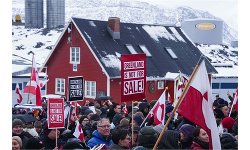 People protest against US President Donald Trump's policy toward Greenland in front of the US consulate in Nuuk, Greenland, on January 17, 2026. Photo: VCG