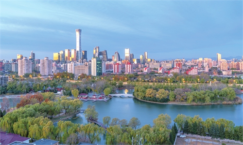 A sunrise view over Honglingjin Park and the CBD in Beijing on November 20, 2025 Photo: VCG