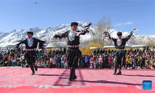 An artist draws a mural of desert poplars in Awati county, Northwest China's Xinjiang Uygur Autonomous Region, on January 29, 2026. Desert poplars can thrive in harsh conditions, withstanding cold, heat, alkali, and extreme drought while serving as a natural barrier against sandstorms. Photo: VCG