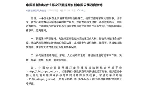 The consulate’s notice emphasized that gambling is strictly prohibited under Chinese law, and an amendment to China’s Criminal Law explicitly criminalizes cross-border gambling. Even in countries where casinos operate legally, Chinese citizens gambling abroad could still constitute a violation of Chinese law. Organizing or hosting gambling activities may result in prosecution, and embassies and consulates cannot provide protection for illegal acts.