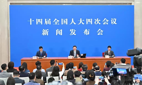 Lou Qinjian, spokesperson for the fourth session of the 14th National People's Congress (NPC), attends a press conference at the Great Hall of the People in Beijing, capital of China, on March 4, 2026. The NPC, China's national legislature, held a press conference on Wednesday, one day ahead of the opening of its annual session. Photo: Xinhua