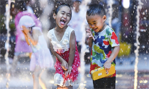 Two children at the Third Municipal Kindergarten in Xinle, Shijiazhuang, North China's Hebei Province, show their hand-painted colored eggs featuring the Chinese words "Spring Equinox Egg Standing" on March 19, 2026. Standing eggs is part of the traditional celebrations of Spring Equinox, which falls on March 20 this year. Photo: VCG