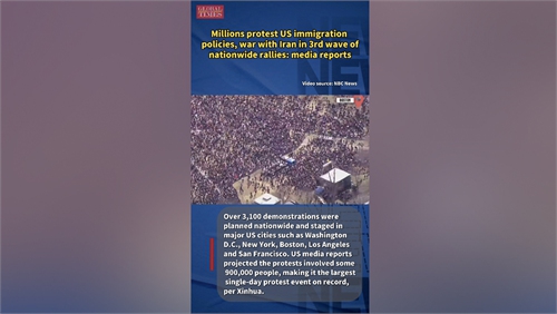 The scale of the protests across the US highlighted the strong domestic opposition to the US administration's policies, including the military campaign against Iran, Chinese analysts said. It is a signal of great political and social divergence in the country and of mounting public general dissatisfaction that could ferment this year, which risks more chaos and uncertainty.