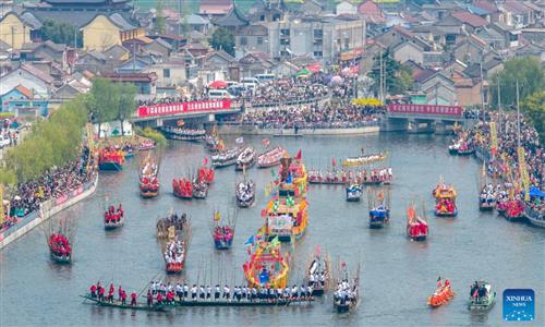 Hundreds of boats participating in a local boat performance in Taizhou, East China's Jiangsu Province set off on April 6, 2026. Photo: VCG