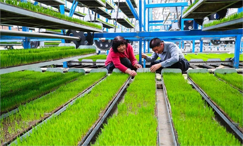Two workers sort samples of fan products manufactured for participating national teams of the 2026 World Cup in a company in Wuyi county of East China's Zhejiang Province on April 8, 2026. The company has secured a large number of orders for national flags, scarves, capes, hats, backpacks, and other fan merchandise from countries such as Brazil, Argentina, and Canada. Photo: VCG