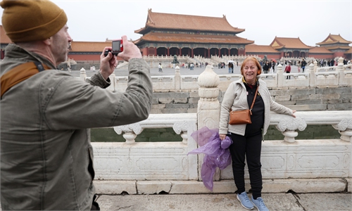 Olga Soltes (right), a US participant in the historic “Ping-Pong Diplomacy,” and others visit the Palace Museum in ...