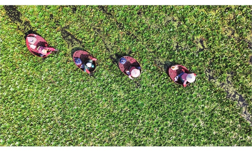 Two livestreamers promote and sell local cherries in Beihai village, Southwest China's Guizhou Province, on April 14, 2026. A local broadcasting company launched a "village chef" project to help villagers expand their sales channels and increase their incomes by using livestreaming e-commerce. Photo: VCG