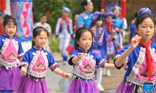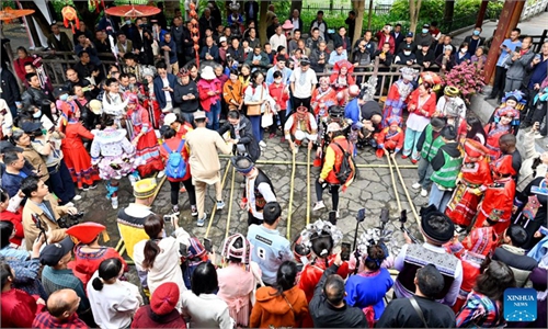 Residents of Wuzhou, South China's Guangxi Zhuang Autonomous Region, stage dragon dances at a local park on April 16, 2026 to welcome the upcoming Sanyuesan Festival. The Sanyuesan Festival, which falls on April 19 this year, is a traditional festival celebrated on the third day of the third month on the lunar calendar by some ethnic groups in China. Photo: VCG