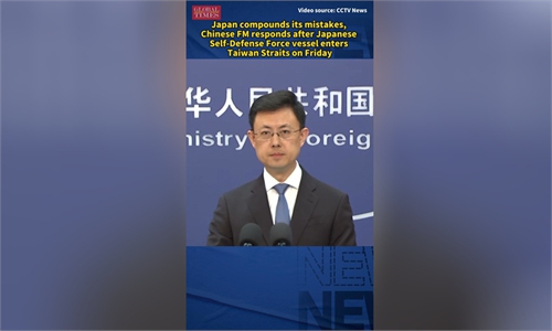 China Military Bugle, an official media account under the Chinese People's Liberation Army (PLA) News Media Center, posted a video on social media on Saturday, showing drone-captured footage of how the PLA Eastern Theater Command (ETC) deployed naval and air forces to monitor the movement of a Japanese destroyer transiting the Taiwan Straits a day prior.