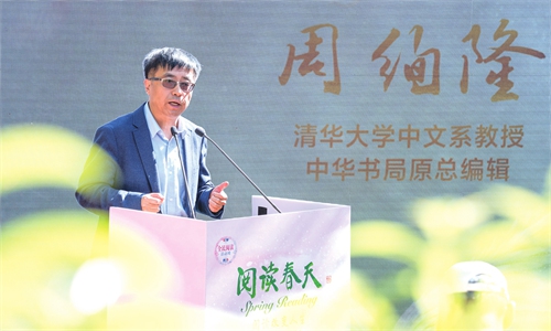 Li Nianzu speaks at the “Spring Reading” event. Photo: Chen Tao/GT