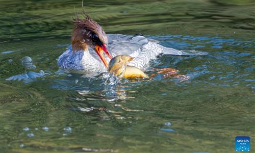 Chinese mergansers spotted wintering in Dazhang River, SE China