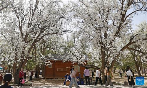 Spring flowers in full blossom during Qingming Festival holiday in NW China
