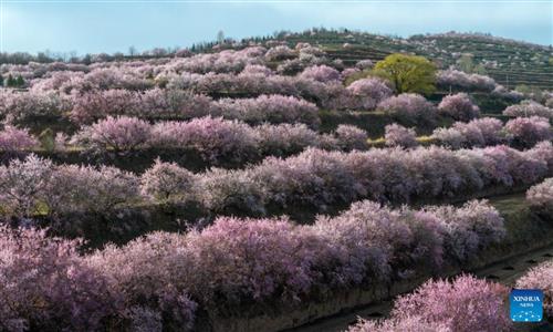 Apricot blossoms in full bloom attract people for spring outings in NW China's Gansu