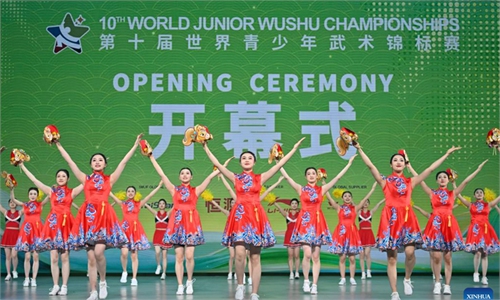 Opening ceremony of 10th World Junior Wushu Championships held in China's Tianjin