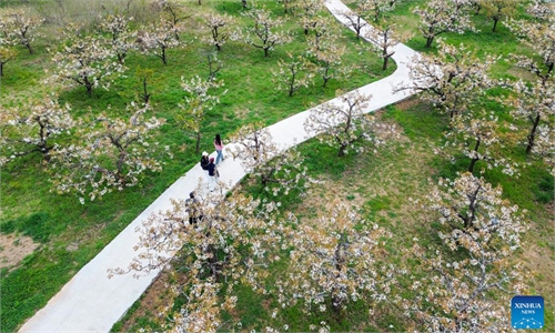 Pear blossoms attract tourists in Jinzhou City, China's Hebei