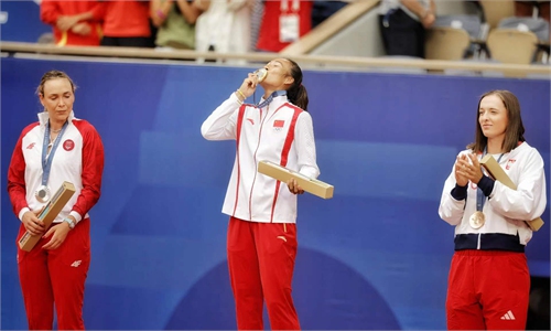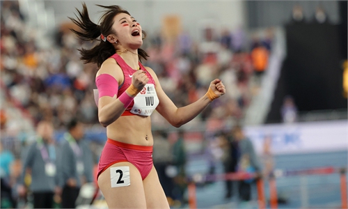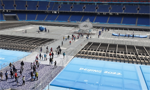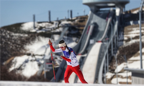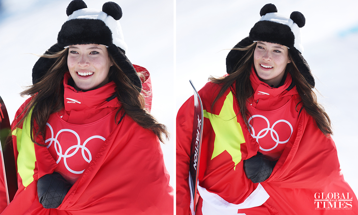 Chinese freeskiers Liu Mengting finished in second place at the FIS Snowboard & Freeski Big Air World Cup women's final in Shougang, Beijing, on Saturday. (Photos: Li Hao/GT)