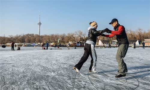 Citizens and tourists gather to celebrate the Spring Festival at Qinggeda Lake scenic spot in Wujiaqu, Northwest China's Xinjiang Uygur Autonomous Region. Expertly crafted ice and snow sculptures captivate visitors. ...