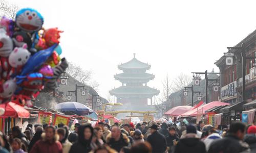 During the Spring Festival holiday, the commercial street at Yuhuang Pavilion in Yanqing District, Beijing, the capital of China, gets crowded from early morning. As the oldest and largest Spring ...