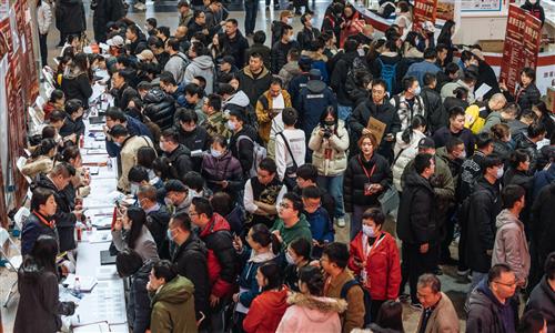 A large-scale spring season job fair kicks off in Shanghai on Saturday, with more than 10,000 job openings offered by more than 500 enterprises. Photos: Lu Ting/GT