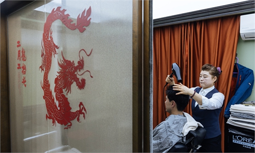 Customers get haircuts at a salon in Beijing on March 20, which marks the second day of the second month in Chinese lunar calendar, traditionally known as the Dragon Head-Raising ...