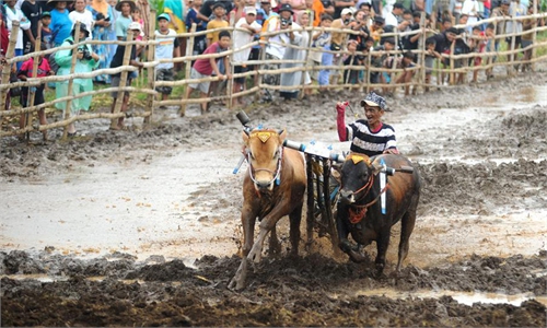 Furious traditional bull race in Indonesia