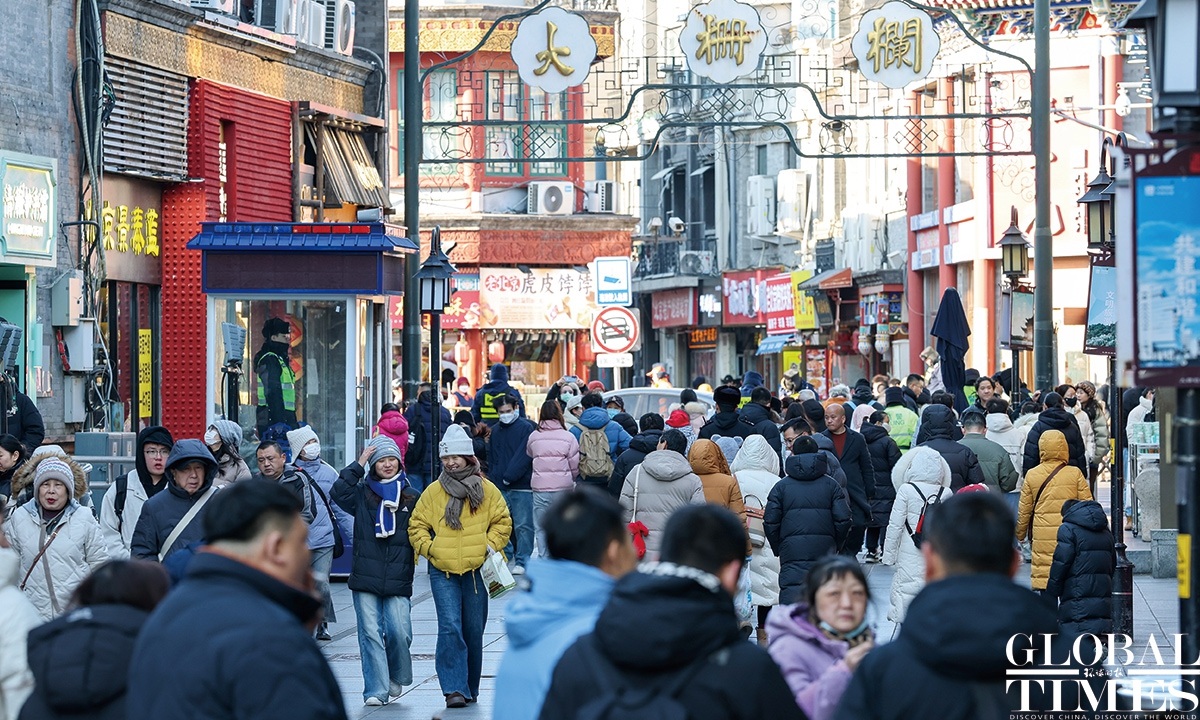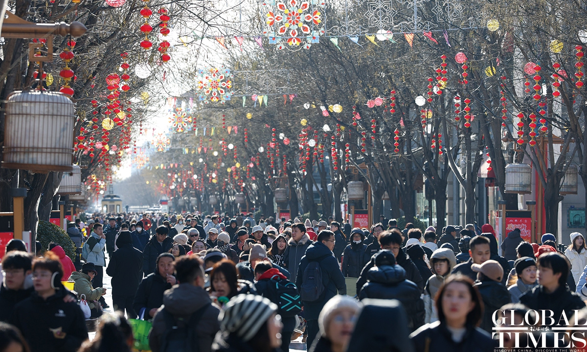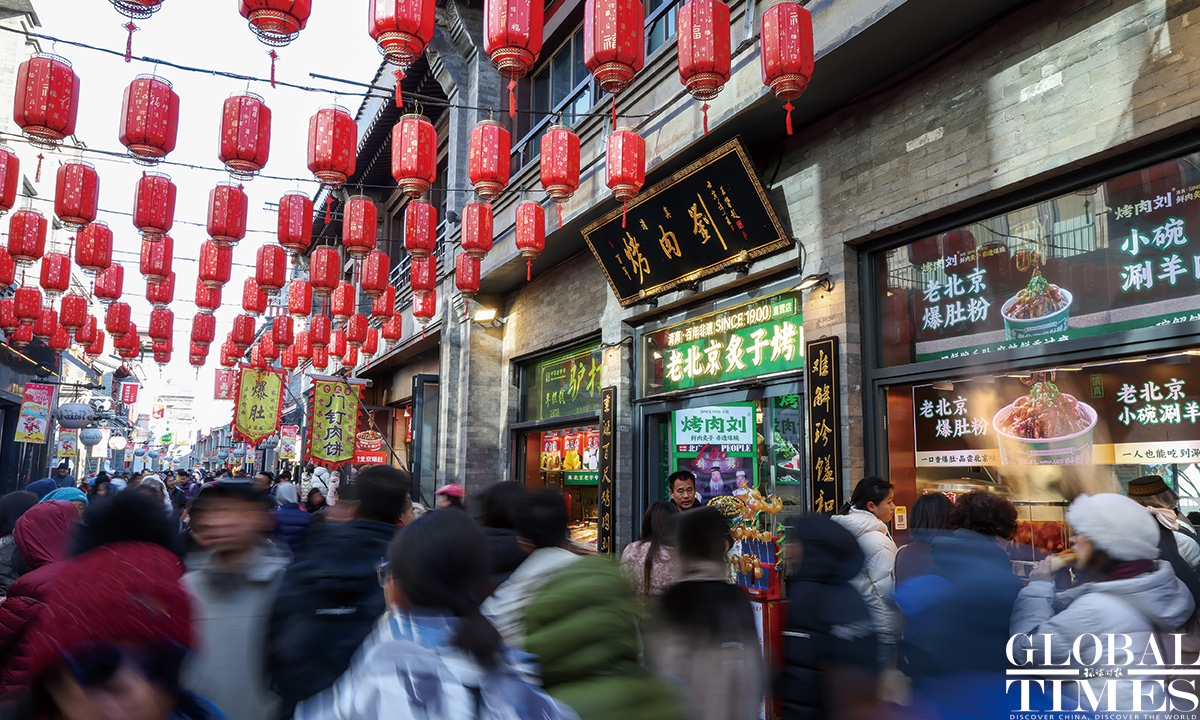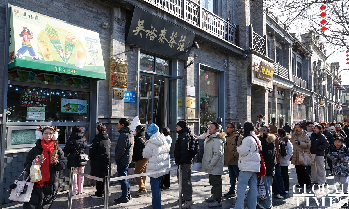On January 1, 2025, #Beijing's Qianmen pedestrian street was bustling with visitors. Long lines formed in front of various traditional shops, showcasing the vibrant holiday spirit! Photos: Chen Tao/GT