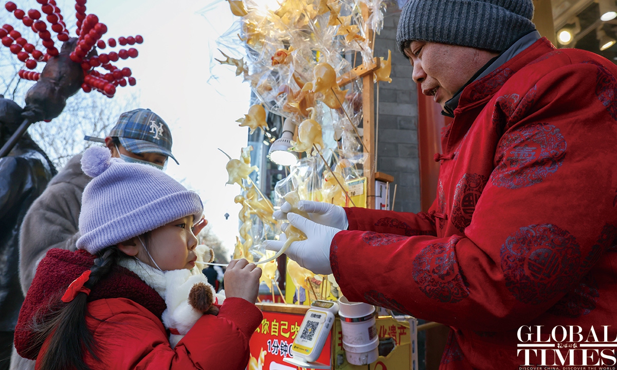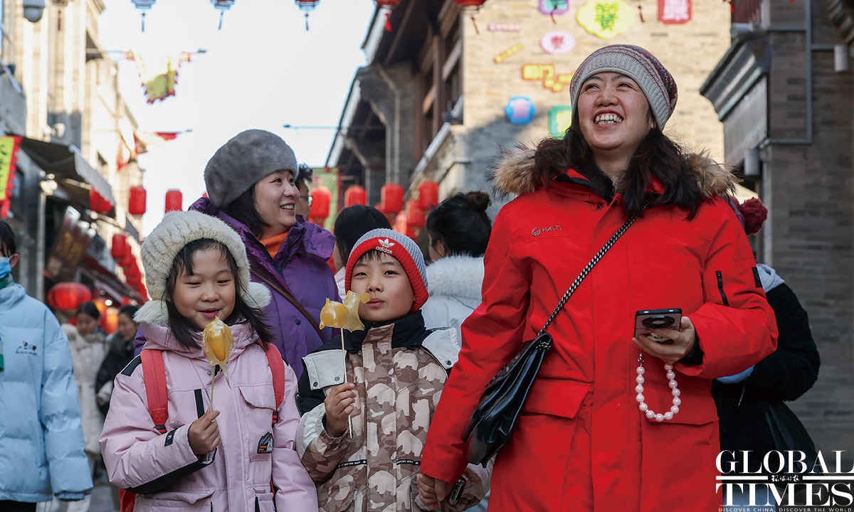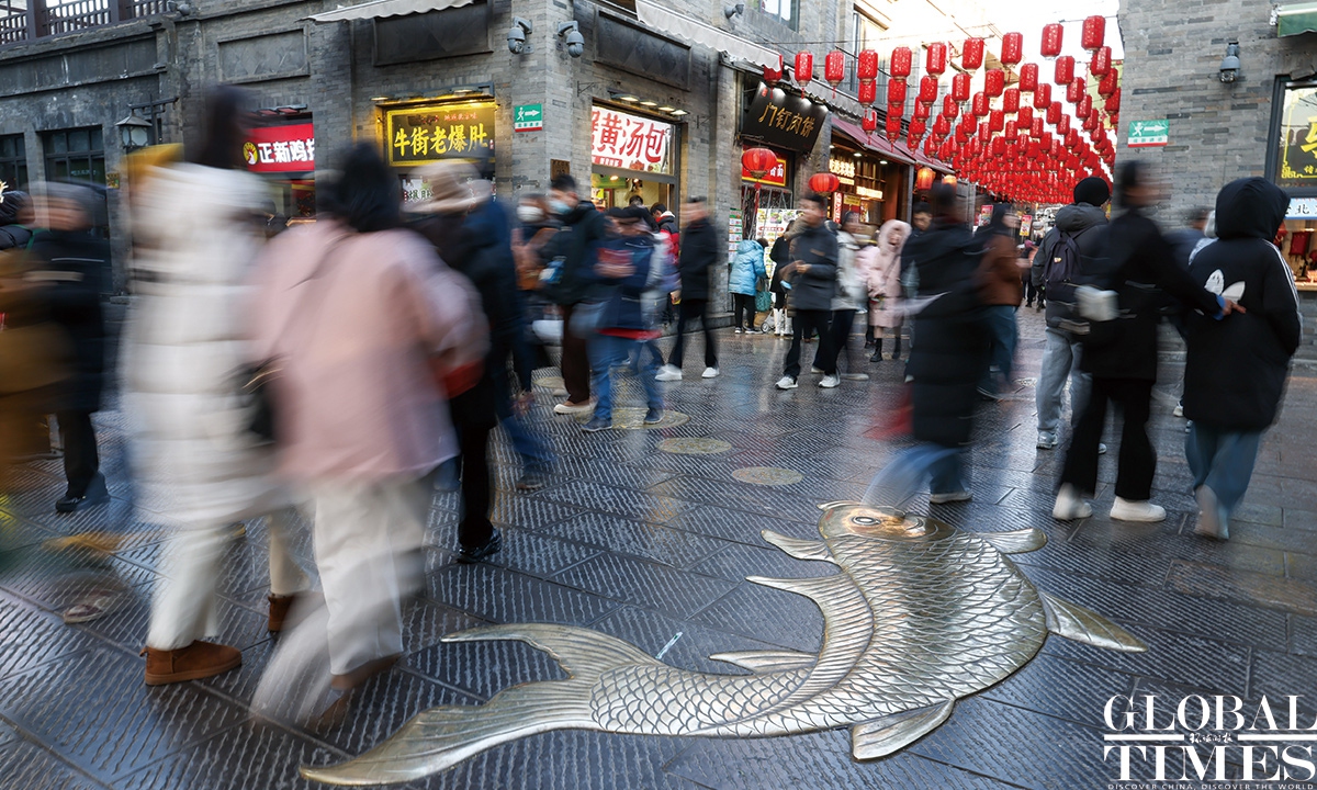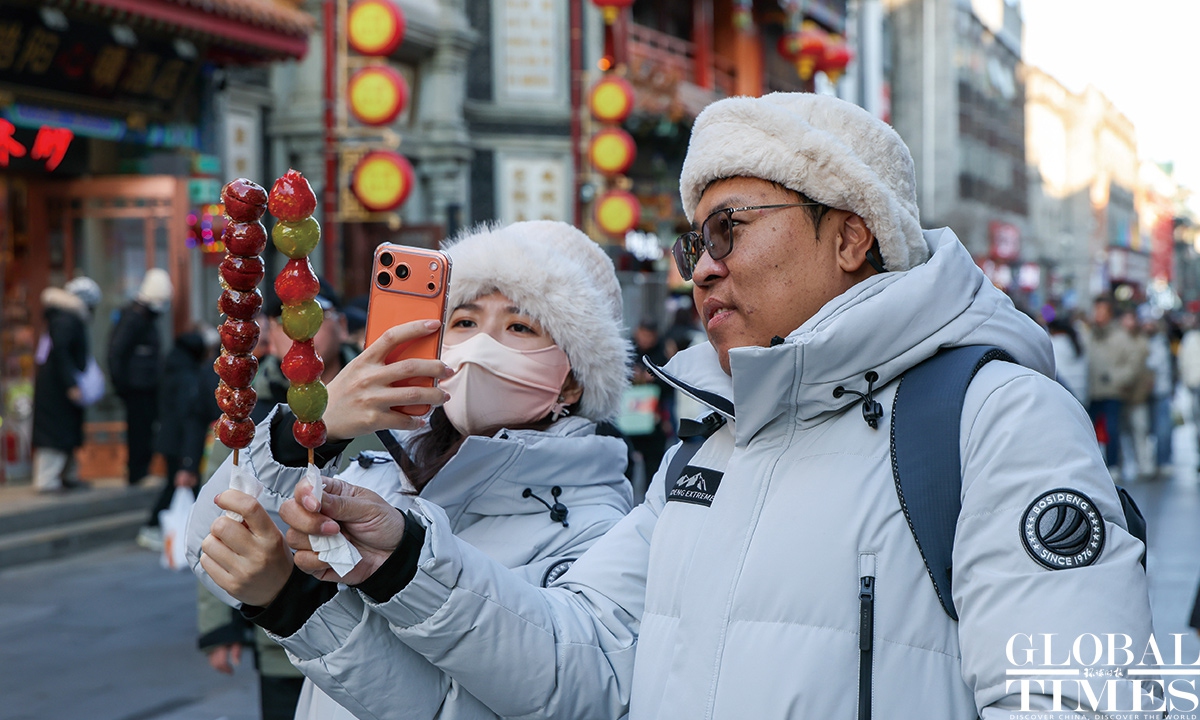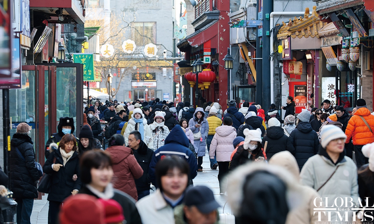 On January 1, 2025, #Beijing's Qianmen pedestrian street was bustling with visitors. Long lines formed in front of various traditional shops, showcasing the vibrant holiday spirit! Photos: Chen Tao/GT