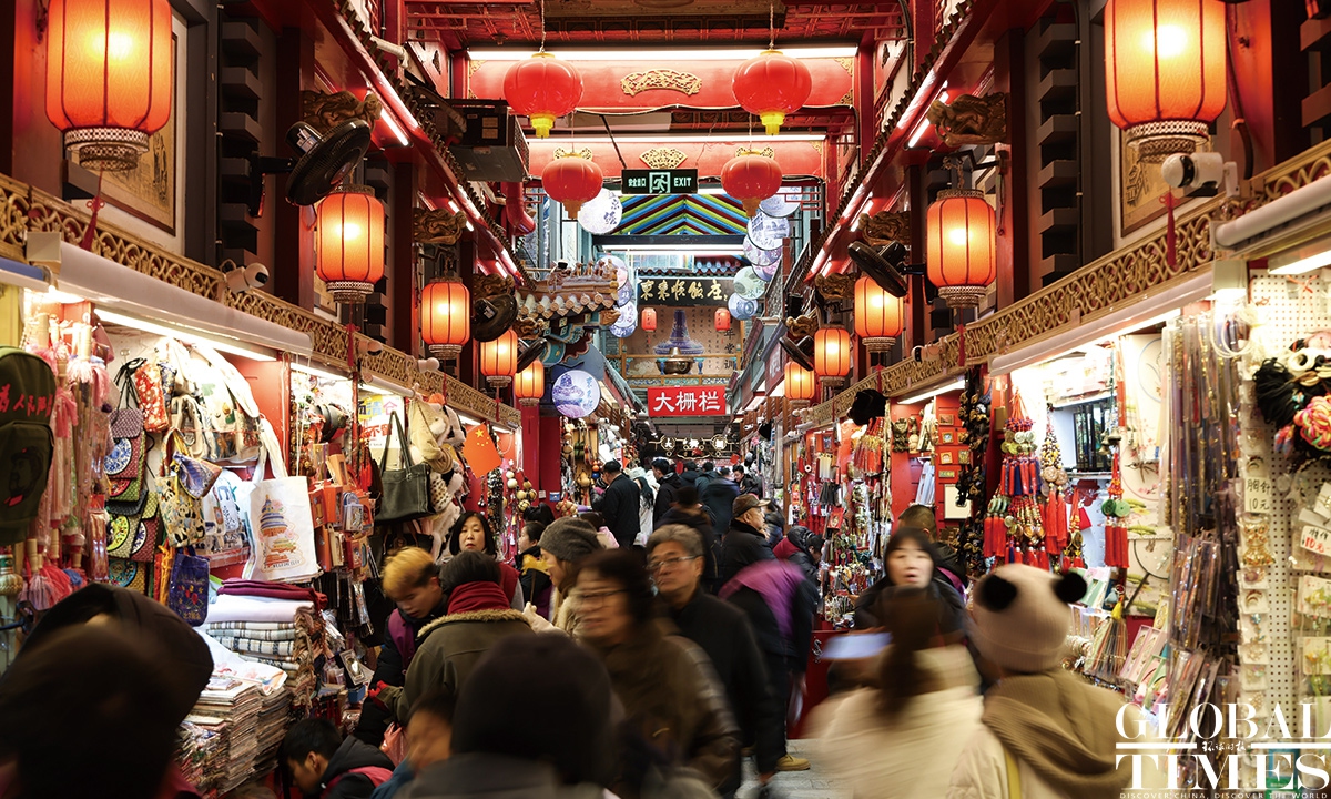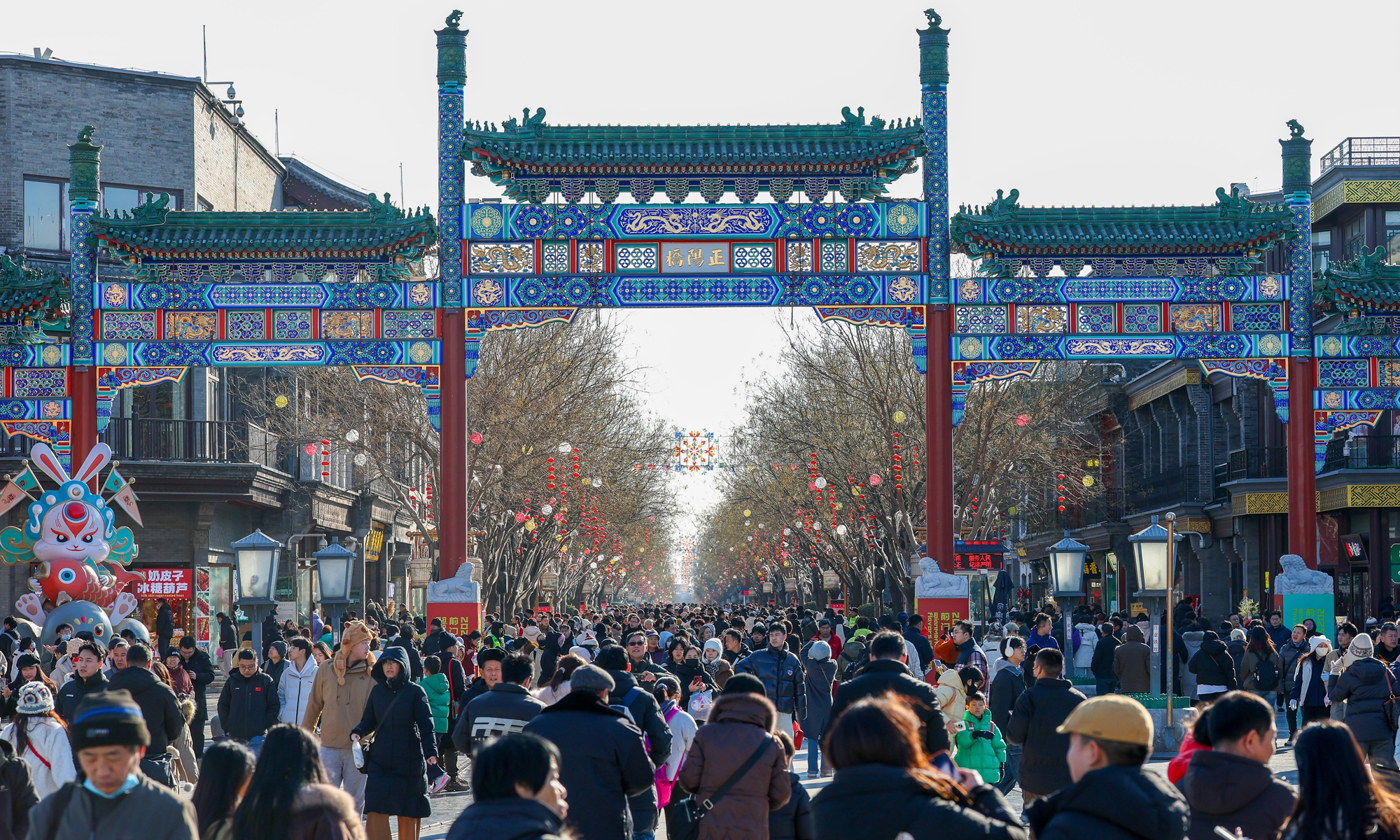 Crowds fill Beijing's Qianmen pedestrian street on New Year's Day