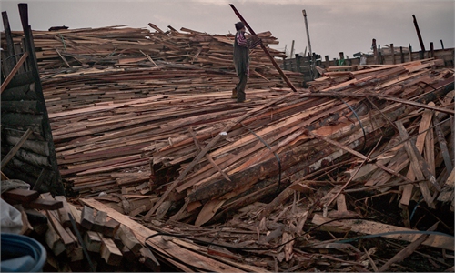 Workers unload watermelons from boats in Dhaka, Bangladesh