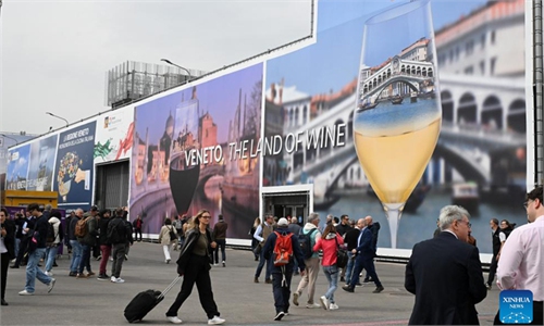 Int'l wine and spirits exhibition Vinitaly held in Verona, Italy