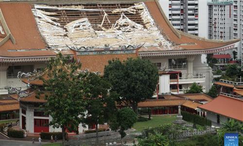 Roof tiles of Venerable Hong Choon Memorial Hall fall in Singapore