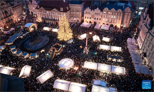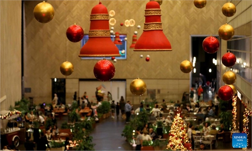 People enjoy Christmas atmosphere at Beirut Souks in Lebanon