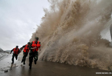 More than 800,000 residents in Yuyao, Zhejiang Province hit by torrential rains were still suffering from shortages of food, water and electricity supplies caused by Typhoon Fitow.