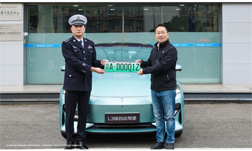 China's first official license plate dedicated to Level-3 (L3) autonomous driving, "Yu-AD0001Z," was issued by authorities in Southwest China's Chongqing city, Xinhua News Agency reported on Saturday, a swift move following the central government's giving go-ahead to L3 road trial runs on December 15.