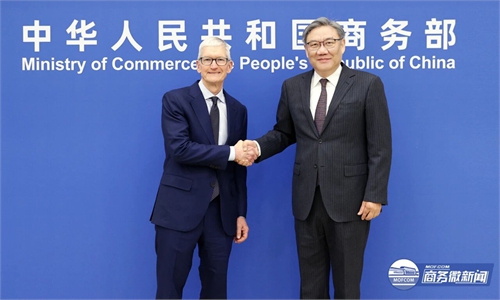 Chinese Minister of Commerce Wang Wentao met with Apple CEO Tim Cook in Beijing on Friday, according to a video clip released on the official WeChat account of China's Ministry of Commerce.