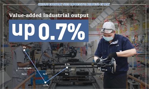 China's economy withstood pressures, maintaining stable growth momentum in May this year. Highlights of the economic data in May: -Value-added industrial output up 5.8% y-o-y -Retail sales of consumer goods up 6.4% y-o-y -Foreign trade up 2.7% y-o-y -Service production index up 6.2% y-o-y