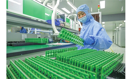 Technicians develop and produce automotive pressure sensors at the sensor research and manufacturing workshop of Hefei Senmol Sensor Technology Co in Hefei, East China's Anhui Province, on April 1, 2026. Photo: VCG