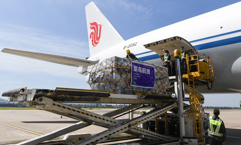 A train fully loaded with goods gradually departs Yiwu West Station, the world's 'supermarket' Yiwu, East China's Zhejiang Province, and heading toward its final destination in Madrid, Spain, 13,000 kilometers away. This is the third train departing from the station in a day, while it used to be just once in a day or in days. Despite the global pandemic and disruptions, the China-Europe freight train, as the land envoy of the Belt and Road Initiative (BRI), has significantly bucked the trend and operated in full swing providing markets across the Eurasian continent much-needed goods and products, from preventative masks to home appliances from factories in South China to stores of countries along the route.