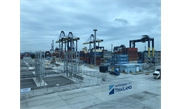 At the autonomous container yard of the Laem Chabang Port, an unmanned crane is accurately stretching out to a container carried by a truck and putting it beside the many containers already piled at the yard block.