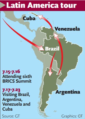 Chinese President Xi Jinping left Beijing on Sunday morning for state visits to Brazil, Argentina, Venezuela and Cuba.