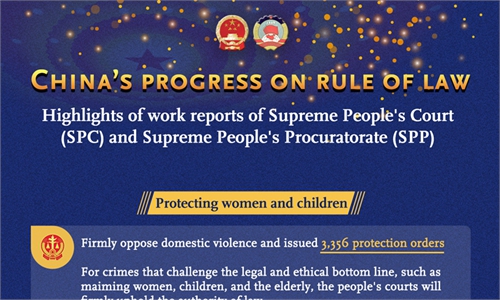 China's progress on rule of law in 2021: -3,356 protection orders were issued to protect women from domestic violence -23,000 bribery cases were concluded -3,436 people were prosecuted for internet defamation, insult Check ...
