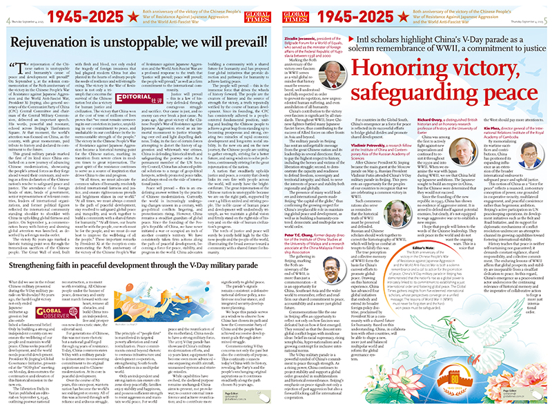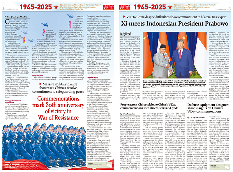 China on Wednesday held a grand V-Day military parade to mark the 80th anniversary of the victory in the Chinese People's War of ...