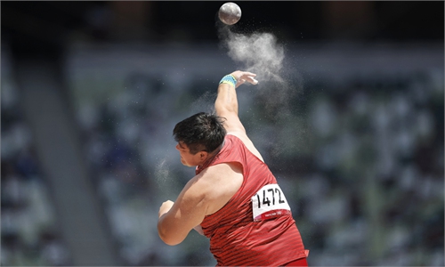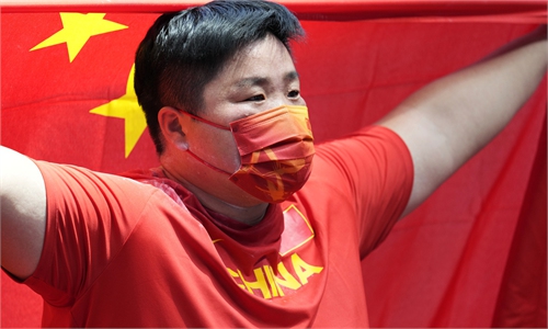 Liu Shiying of China made a powerful throw of 66.34 meters at her first attempt to deliver the first women's javelin throw gold medal for China at the Tokyo Olympics on Friday. Photo: Cui Meng/GT