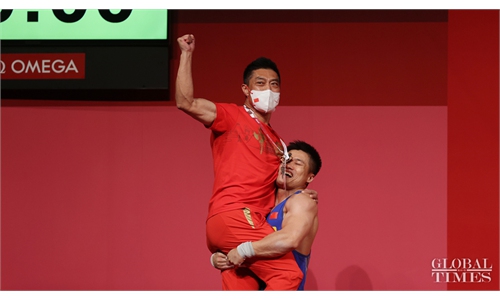 The record-breaking performance by 37-year-old Olympic gold medalist Lü Xiaojun at the Tokyo Olympic Games is being celebrated by Chinese, many of whom expressed surprise at the weightlifter's overseas popularity. Lü set a new Olympic record after achieving a total score of 374 kilograms and bagged gold in the men's 81-kilogram weightlifting on Saturday afternoon.