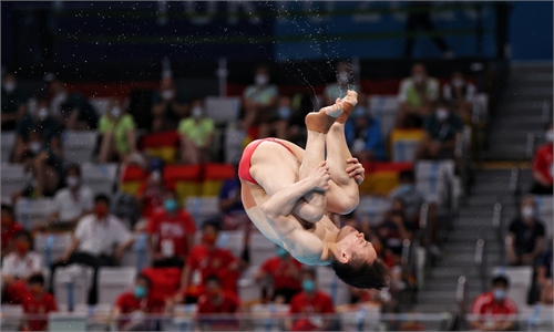 China won gold in the men's synchronized 3-meter springboard competition at the Tokyo Olympics on Wednesday, after losing in Rio in 2016.