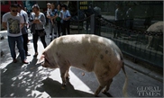 Zhu Jianqiang, or “strong-willed pig,” became famous overnight during the 2008 Wenchuan earthquake. It was buried for 36 days under piles of rubble and discovered alive, surviving on cinder and rainwater. The sow was purchased by the Jianchuan Museum, a private museum cluster located in Dayi, Southwest China's Sichuan Province owned by entrepreneur Fan Jianchuan. The pig, now 11 years old, lives in the museum's backyard and will live there until she dies (usually after 15 years). She enjoys a balanced diet of vegetables and fruits, a daily walk or nap under the trees, and visits of tourists from all over the country. Photos: Li Hao/GT