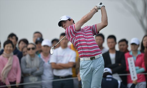 World No.1 golfer and major winners Tiger Woods and Rory McIlory played in a two-man 18-hole contest for the first time in the match at Mission Hills in Haikou, south China's Hainan Province on Monday.