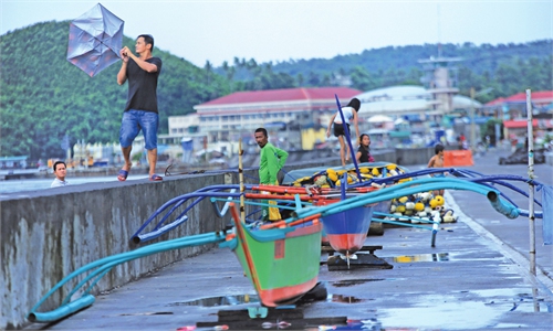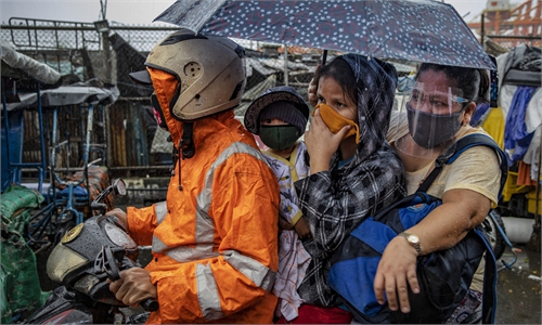 Super Typhoon Goni pounded the Philippines Sunday with authorities warning of "catastrophic" conditions in the region expected to take the hardest hit, where more than 300,000 have fled their homes.