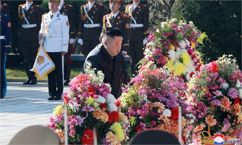North Korean leader Kim Jong-un paid tribute to martyrs of Chinese People's Volunteers army in Hoechang County on Wed in commemoration of the 70th anniversary of the CPV army entering the DPRK during the War to Resist US Aggression and Aid Korea: KCNA